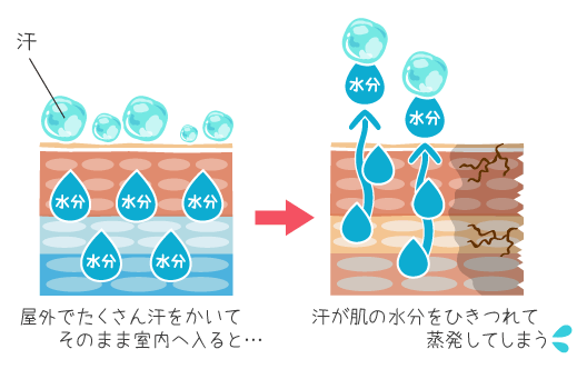 - 結果、肌表面は汗でベタついたまま、肌の内側の水分が蒸発